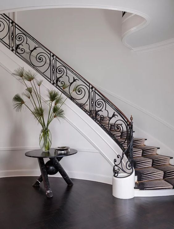 Đối với cầu thang trong phòng khách, ngoài những thanh chắn bằng gỗ và inox đơn điệu. Chủ nhà có thể dùng tay vịn, cột chống và bậc cầu thang bằng sắt mỹ thuật với những hoa văn có mạ màu. Trong trang trí lan can sân thượng, có thể dùng sắt hoa văn uốn lượn kết hợp với tay vịn bằng gỗ tạo nên sự sang trọng và lịch lãm.