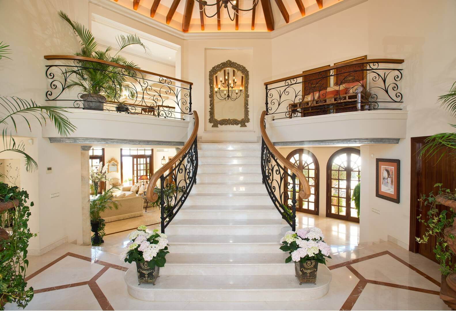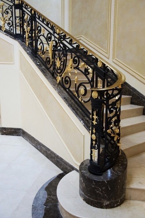 Thêm vào đó, sắt dễ nóng chảy ở nhiệt độ cao nên rất linh hoạt trong tạo hình, thiết kế được nhiều kiểu dáng đa dạng. Vì vậy, các tòa nhà hay biệt thự phong cách bán cổ điển hay cổ điển đều có thể áp dụng loại thang này. Đặc biệt, đây chính là sản phẩm rất phổ biến vì tính tiện dụng cao, giúp tiết kiệm chi phí hơn Inox hay Bê tông.