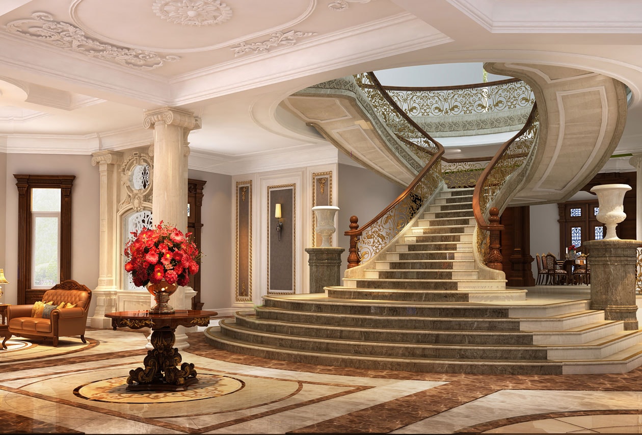 Thiết kế cầu thang nhà biệt thự không chỉ mang tính sang trọng và thể hiện cá tính riêng của gia chủ,. Mà theo quan niệm phương Đông, nó còn là nơi khởi đầu dẫn luồng sinh khí đến toàn bộ ngôi nhà. Khi thiết kế cầu thang cho biệt thự, có một số yếu tố cần lưu ý: